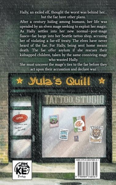 Hally, an exiled elf, thought the worst was behind her...but the fae have other plans. After a century hiding among humans, her life was upended by an elven mage seeking to exploit her magic. As Hally settles into her new normal-post-mage fiasco-fae barge into her Seattle tattoo shop, accusing her of violating some fae-elf treaty. The elves have never heard of the fae. For Hally, being sent home means death. The fae offer asylum if she rescues their kidnapped children, taken by the same conniving mage who wanted Hally. She must uncover the mage's ties to the fae before they act upon their accusation and declare war.