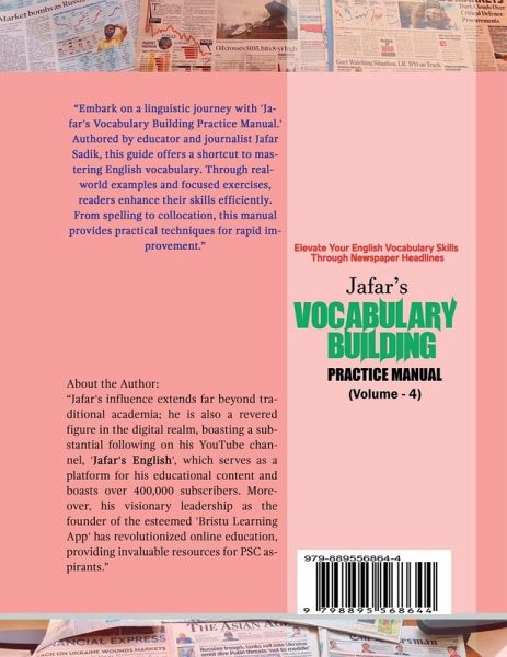 This book is a shortcut to mastering essential vocabulary used by writers, journalists, and educators. Each word is carefully selected and accompanied by accurate definitions and real-life examples from newspapers and publications. Words are organized into categories, allowing for focused learning and better retention. Key Features: Core Vocabulary: Learn the key words frequently used across various media. Practical Exercises: Engage in structured exercises and collocation practices at the end of each chapter. Daily Study Plan: Follow a systematic approach for rapid language improvement. Real-world Examples: Understand word usage through sentences from newspapers and publications.