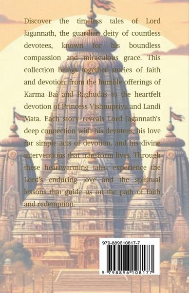 Discover the timeless tales of Lord Jagannath, the guardian deity of countless devotees, known for his boundless compassion and miraculous grace. This collection brings together stories of faith and devotion, from the humble offerings of Karma Bai and Raghudas to the heartfelt devotion of Princess Vishnupriya and Landi Mata. Each story reveals Lord Jagannath's deep connection with his devotees, his love for simple acts of devotion, and his divine interventions that transform lives. Through these heartwarming tales, experience the Lord's enduring love and the spiritual lessons that guide us on the path of faith and redemption.