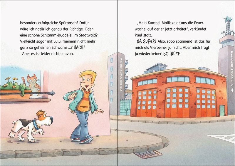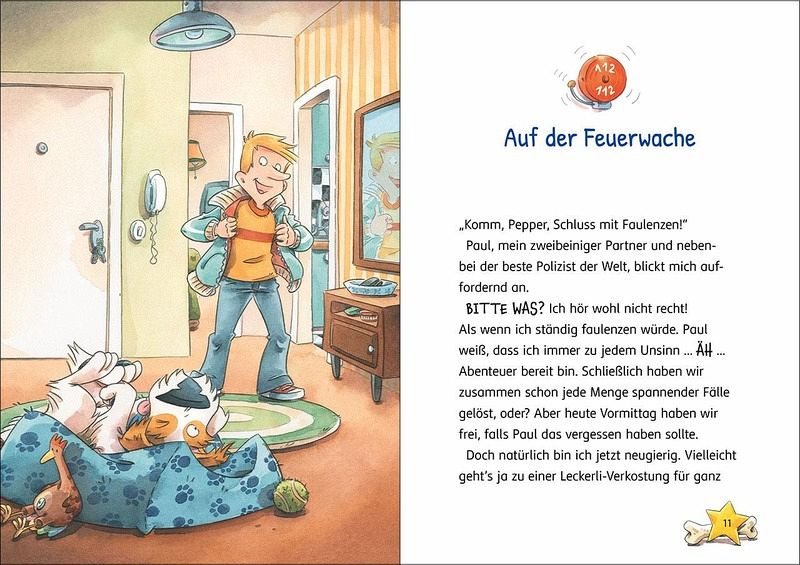 Hier bellt die Polizei! Feueralarm an der Schillerschule! Pepper und sein Mensch Paul sind zufälligerweise in der Feuerwache und fahren auch zum Brandort. An der Schule angekommen, schlagen ihnen Flammen aus dem Chemieraum entgegen. Was ist passiert? In der Gegend gab es in letzter Zeit vermehrt Brände. War es etwa Brandstiftung? Warum ist eine Gruppe von Jugendlichen so nervös? Peppers Spürsinn ist geweckt. Er kann bestimmt herausfinden, wer der Feuerteufel ist. Er ist schließlich der beste Polizeihund überhaupt!
