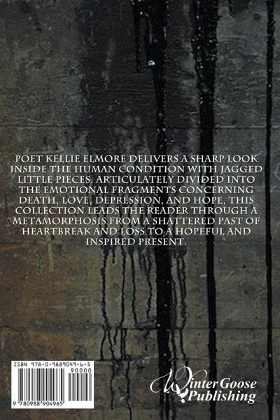 Poet Kellie Elmore delivers a sharp look inside the human condition with Jagged Little Pieces. Articulately divided into the emotional fragments concerning death, love, depression, and hope, this collection leads the reader through a metamorphosis from a shattered past of heartbreak and loss to a hopeful and inspired present.