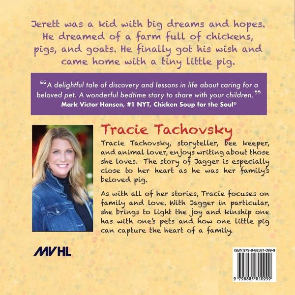 Jerett was a kid with big dreams and hopes. He dreamed of a farm full of chickens, pigs, and goats. He finally got his wish and came home with a tiny little pig. "A delightful tale of discovery and lessons in life about caring for a beloved pet. A wonderful bedtime story to share with your children." Mark Victor Hansen, #1 NYT, Chicken Soup for the Soul®