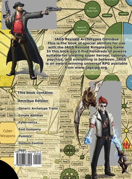 JAGS Revised Archetypes is the book of special abilties for the award-winning JAGS table-top, pencil and paper roleplaying game. It contains hundreds of special powers for cyborgs, super heroes, adventurers, alien and fantasy races, and more!