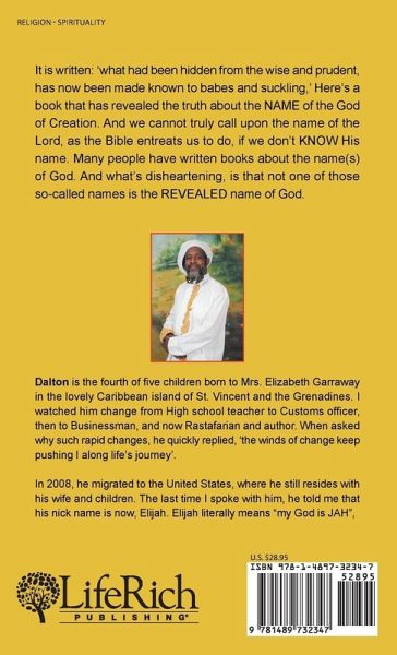 Dalton is the fourth of five children born to Mrs. Elizabeth Garraway in the lovely Caribbean island of St. Vincent and the Grenadines. I watched him change from High school teacher to Customs officer, then to Businessman, and now Rastafarian and author. When asked why such rapid changes, he quickly replied, 'the winds of change keep pushing I along life's journey'. In 2008, he migrated to the United States, where he still resides with his wife and children. The last time I spoke with him, he told me that his nick name is now, Elijah. Elijah literally means "my God is JAH",