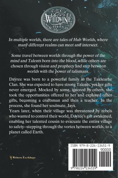 Dayree was born to a powerful family in the Taksearhe Clan. She was expected to have strong Talents, yet her gifts never emerged. Mocked by some, ignored by others, she took the opportunities offered to her and explored other gifts, becoming a craftsman and then a teacher. In the process, she found her soulmate, Jayx. Years later, when their village was threatened by rebels who wanted to control their world, Dayree's gift awakened, enabling her talented cousin to evacuate the entire village to safety--stepping through the vortex between worlds, to a planet called Earth.