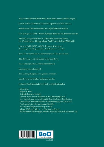 Eine "Freundliche Gesellschaft mit den Armbrusten und stehlen Bogen"Crossbow Bone Plate from Medieval Trapezitsa in Veliko TarnovoSüddeutsche Schützenarmbrust mit ungewöhnlichem SchlossDer "springende Punkt": Warum Klappenschlösser beim Spannen einrastenBarocke Schnepperschießen an sächsischen Fürstenresidenzen -ein Wandschnepper Herzog Johann Adolf II. von Sachsen-WeißenfelsHermann Buhle (1873 - 1945), der letzte Rüstmeister der privilegierten Bogenschützen-Gesellschaft zu DresdenZwei Fotos des Dresdner Armbrustmachers Theodor HänischThe Bow Trap - is it the Origin of the Crossbow?Ein westeuropäischer ArmbrustsehnenknotenDie Armbrust im FechtbuchZur Leistungsfähigkeit einer "großen Armbrust"Crossbows in the Wallace Collection, LondonHölzerne Armbrustwinden im Hoch- und SpätmittelalterFachnotizen:Bogner in TirolSteigbügel separat befestigtTartsche mit Armbrustschützen in der Löwenburg KasselEine Beobachtung an mitteleuropäischen ArmbrustsehnenknotenOsmanischer Armbrustschütze beider Eroberung von Tunis 1535Armbrustfalle im Heimatmuseum Bad TölzEin Dresdner Bogner aus dem Jahr 1609Johann Wolfgang Kolbe - ein Chemnitzer BognerEin Schnepper des Leipziger Armbrustmachers Friedrich Ferdinand Tell