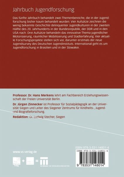 Das fünfte Jahrbuch behandelt zwei Themenbereiche, die in der Jugendforschung bisher kaum behandelt wurden. Vier Aufsätze zeichnen die wenig bekannte Geschichte delinquenter Jugendkulturen in der zweiten Hälfte des 20. Jahrhunderts in der Bundesrepublik, der DDR und in den USA nach. Drei Aufsätze behandeln das innovative Thema jugendlicher Motorisierung, räumlicher Mobilisierung und Stadterfahrung. Vier aktuelle Forschungsprojekte stellen sich vor, darunter erstmals der neue Jugendsurvey des Deutschen Jugendinstituts. International geht es um Jugendforschung in Brasilien und in der Slowakei.
