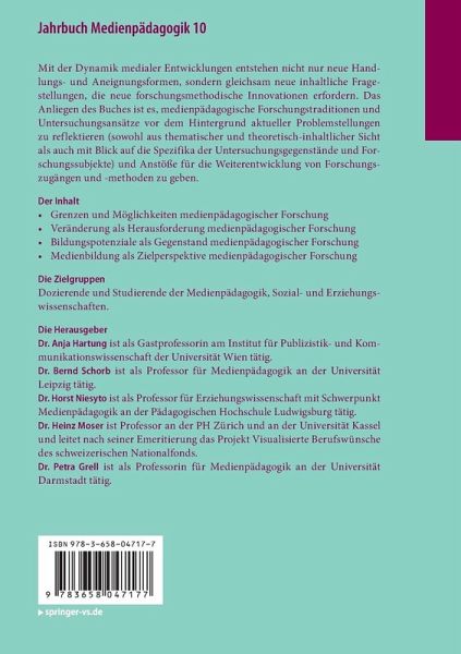 Grenzen und Möglichkeiten medienpädagogischer Forschung.- Veränderung als Herausforderung medienpädagogischer Forschung.- Bildungspotenziale als Gegenstand medienpädagogischer Forschung.- Medienbildung als Zielperspektive medienpädagogischer Forschung.