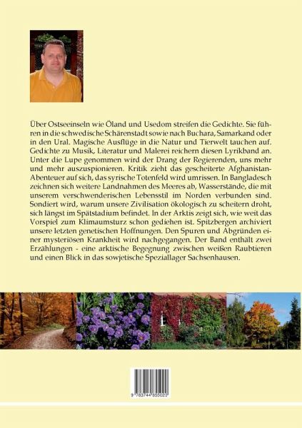 Über Ostseeinseln wie Öland und Usedom streifen die Gedichte. Sie führen in die schwedische Schärenstadt sowie nach Buchara, Samarkand oder in den Ural. Magische Ausflüge in die Natur und Tierwelt tauchen auf. Gedichte zu Musik, Literatur und Malerei reichern diesen Lyrikband an. Unter die Lupe genommen wird der Drang der Regierenden, uns mehr und mehr auszuspionieren. Kritik zieht das gescheiterte Afghanistan-Abenteuer auf sich, das syrische Totenfeld wird umrissen. In Bangladesch zeichnen sich weitere Landnahmen des Meeres ab, Wasserstände, die mit unserem verschwenderischen Lebensstil im Norden verbunden sind. Sondiert wird, warum unsere Zivilisation ökologisch zu scheitern droht, sich längst im Spätstadium befindet. In der Arktis zeigt sich, wie weit das Vorspiel zum Klimaumsturz schon gediehen ist. Spitzbergen archiviert unsere letzten genetischen Hoffnungen. Den Spuren und Abgründen einer mysteriösen Krankheit wird nachgegangen. Der Band enthält zwei Erzählungen - eine arktische Begegnung zwischen weißen Raubtieren und einen Blick in das sowjetische Speziallager Sachsenhausen.
