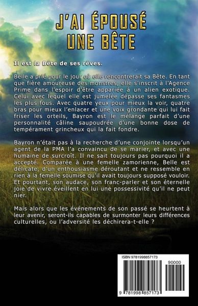 Il est la Bête de ses rêves. Belle a prié pour le jour où elle rencontrerait sa Bête. En tant que fière amoureuse des monstres, elle s'inscrit à l'Agence Prime dans l'espoir d'être appariée à un alien exotique. Celui avec lequel elle est jumelée dépasse ses fantasmes les plus fous. Avec quatre yeux pour mieux la voir, quatre bras pour mieux l'enlacer et une voix grondante qui lui fait friser les orteils, Bayron est le mélange parfait d'une personnalité câline saupoudrée d'une bonne dose de tempérament grincheux qui la fait fondre. Bayron n'était pas à la recherche d'une conjointe lorsqu'un agent de la PMA l'a convaincu de se marier, et avec une humaine de surcroît. Il ne sait toujours pas pourquoi il a accepté. Comparée à une femelle zamorienne, Belle est délicate, d'un enthousiasme déroutant et ne ressemble en rien à la femelle soumise qu'il avait toujours supposé vouloir. Et pourtant, son audace, son franc-parler et son éternelle joie de vivre éveillent en lui une possessivité qu'il ne peut nier. Mais alors que les événements de son passé se heurtent à leur avenir, seront-ils capables de surmonter leurs différences culturelles, ou l'adversité les déchirera-t-elle ?