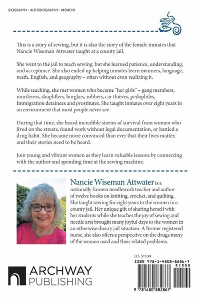 This is a story of sewing, but it is also the story of the female inmates that Nancie Wiseman Attwater taught at a county jail. She went to the jail to teach sewing, but she learned patience, understanding, and acceptance. She also ended up helping inmates learn manners, language, math, English, and geography - often without even realizing it. While teaching, she met women who became "her girls" - gang members, murderers, shoplifters, burglars, robbers, car thieves, pedophiles, Immigration detainees and prostitutes. She taught inmates over eight years in an environment that most people never see. During that time, she heard incredible stories of survival from women who lived on the streets, found work without legal documentation, or battled a drug habit. She became more convinced than ever that their lives matter, and their stories need to be heard. Join young and vibrant women as they learn valuable lessons by connecting with the author and spending time at the sewing machine.
