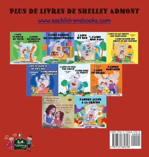 I Love My Mom - French Edition Everybody loves their Mom, no matter what their age. In this bedtime story, the little bunny Jimmy and his older brothers try to find a perfect present for Mom's birthday. They want to show how much they love her. What creative solution did they find to express their feelings? You will find out in this illustrated children's book. Tout le monde aime sa Maman, quelque soit son âge. Dans cette histoire pour s'endormir, le petit lapin Jimmy et ses grands frères essaient de trouver le cadeau parfait pour l'anniversaire de Maman. Ils veulent montrer à quel point ils l'aiment. Quelle solution créative trouvèrent-ils pour exprimer leurs sentiments ? Découvrez-le dans ce livre illustré pour enfants.