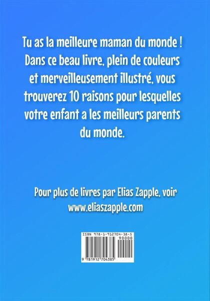 Tu as la meilleure maman du monde ! Dans ce beau livre, plein de couleurs et merveilleusement illustré, vous trouverez 10 raisons pour lesquelles votre enfant a les meilleurs parents du monde. www.eliaszapple.com