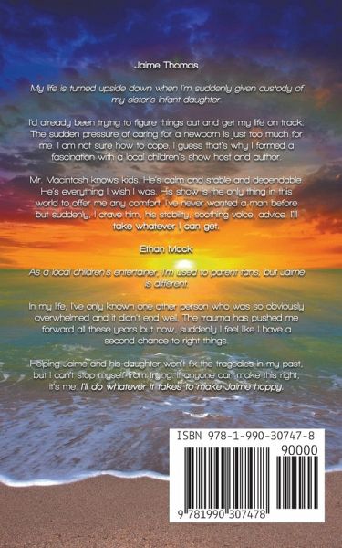 Jaime Thomas My life is turned upside down when I'm suddenly given custody of my sister's infant daughter. I'd already been trying to figure things out and get my life on track. The sudden pressure of caring for a newborn is just too much for me. I am not sure how to cope. I guess that's why I formed a fascination with a local children's show host and author. Mr. Macintosh knows kids. He's calm and stable and dependable. He's everything I wish I was. His show is the only thing in this world to offer me any comfort. I've never wanted a man before but suddenly, I crave him, his stability, soothing voice, advice. I'll take whatever I can get. Ethan Mack As a local children's entertainer, I'm used to parent fans, but Jaime is different. In my life, I've only known one other person who was so obviously overwhelmed and it didn't end well. The trauma has pushed me forward all these years but now, suddenly I feel like I have a second chance to right things. Helping Jaime and his daughter won't fix the tragedies in my past, but I can't stop myself from trying. If anyone can make this right, it's me. I'll do whatever it takes to make Jaime happy.