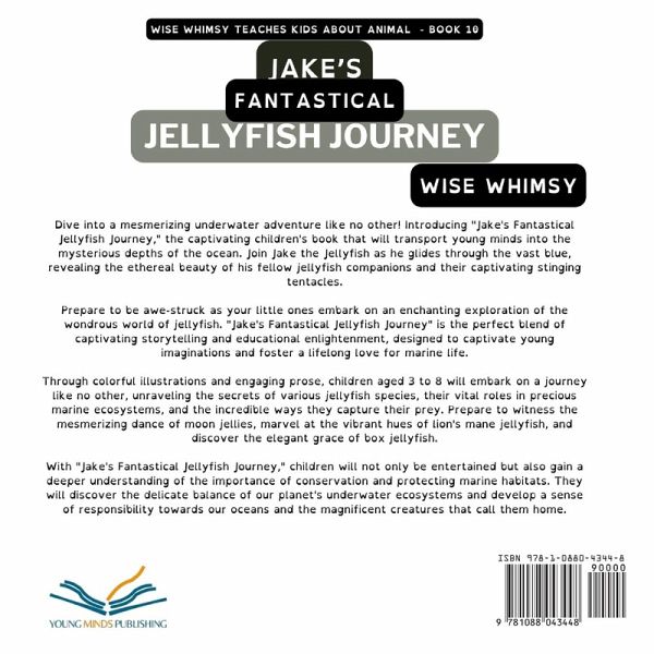 Dive into a mesmerizing underwater adventure like no other! Introducing "Jake's Fantastical Jellyfish Journey," the captivating children's book that will transport young minds into the mysterious depths of the ocean. Join Jake the Jellyfish as he glides through the vast blue, revealing the ethereal beauty of his fellow jellyfish companions and their captivating stinging tentacles. Prepare to be awe-struck as your little ones embark on an enchanting exploration of the wondrous world of jellyfish. "Jake's Fantastical Jellyfish Journey" is the perfect blend of captivating storytelling and educational enlightenment, designed to captivate young imaginations and foster a lifelong love for marine life. Through colorful illustrations and engaging prose, children aged 3 to 8 will embark on a journey like no other, unraveling the secrets of various jellyfish species, their vital roles in precious marine ecosystems, and the incredible ways they capture their prey. Prepare to witness the mesmerizing dance of moon jellies, marvel at the vibrant hues of lion's mane jellyfish, and discover the elegant grace of box jellyfish. With "Jake's Fantastical Jellyfish Journey," children will not only be entertained but also gain a deeper understanding of the importance of conservation and protecting marine habitats. They will discover the delicate balance of our planet's underwater ecosystems and develop a sense of responsibility towards our oceans and the magnificent creatures that call them home. Inspire a sense of wonder and excitement in your little explorers with this captivating tale. Order your copy of "Jake's Fantastical Jellyfish Journey" today and embark on an unforgettable expedition to the captivating world of jellyfish. Let their imaginations take flight as they dive into the magic beneath the waves. Don't miss out on this extraordinary educational journey - the adventure awaits!