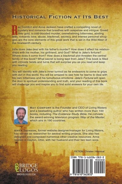 Historical Fiction At Its Best Ray Comfort and Anna Jackson have crafted a compelling novel of mystery and romance that breathes with suspense and intrigue. Greed over gold, a cold-blooded murder, overwhelming bitterness, abiding faith, romantic love, abuse, blackmail, secrecy, and intense personal struggles are the core elements of this great work that is set in the Wild West of the nineteenth century. How does Jake deal with his father's murder? How does it affect his relationships with his mother, his girlfriend, and God? What is Jake's fortune? Where does it come from? How does a blackmail plot threaten the central family of this book? What secret is being kept from Jake? This book is filled with intricate twists and turns that will surprise you as you read an keep reading. You will identify with Jake's inner turmoil as he endeavors to come to grips with evil in this world. You will be amazed to see how he learns to deal with his own bitterness and his tumultuous emotions. Jake's Fortune will open the door to spiritual understanding and truth, and your reading of this book will challenge you and inspire you to find solid answers for your own life.