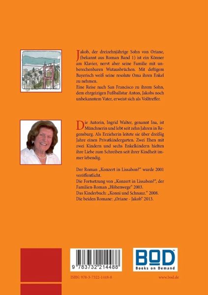 Jakob, der dreizehnjährige Sohn von Oriane, (bekannt aus Roman Band 1) ist ein Könner am Klavier, nervt aber seine Familie mit unberechenbaren Wutausbrüchen. Mit deftigem Bayrisch weiß seine resolute Oma ihren Enkel zu nehmen.Eine Reise nach San Francisco zu ihrem Sohn, dem ehrgeizigen Fußballstar Anton, Jakobs noch unbekanntem Vater, erweist sich als Volltreffer.