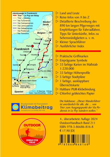 "Sehr ausführliche Informationen zum Jakobsweg und dem Pilgern, mit Tipps zur richtigen Ausrüstung, Hinweisen zur Reisezeit und wichtigen Adressen." (Besprechungsdienst für öffentliche Bibliotheken) "Dieser Wegführer ist unerlässlich für alle, die zur Zeit von Trier zum Ausgangspunkt der Via Podiensis in Le Puy wandern wollen." (Die Kalebasse)