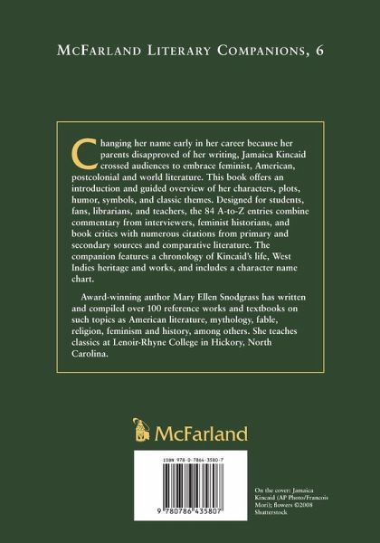 Changing her name early in her career because her parents disapproved of her writing, Jamaica Kincaid crossed audiences to embrace feminist, American, postcolonial and world literature. This book offers an introduction and guided overview of her characters, plots, humor, symbols, and classic themes. Designed for students, fans, librarians, and teachers, the 84 A-to-Z entries combine commentary from interviewers, feminist historians, and book critics with numerous citations from primary and secondary sources and comparative literature. The companion features a chronology of Kincaid's life, West Indies heritage and works, and includes a character name chart.
