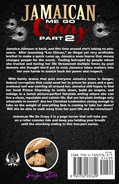 Jamaica Johnson is back, and this time around she's taking no prisoners. After launching "Las Chicas," an illegal yet very profitable brothel to make a quick come up, Jamaica soon learns that money changes people for the worst. Feeling betrayed by people whom she trusted and having her life threatened multiple times by past demons she thought she'd put to rest; Jamaica takes matters into her own hands to snatch back her power and respect. With family drama that puts everyone Jamaica loves in danger, federal corruption that could send her to prison for years and a generational turf war swirling all around her, Jamaica still hopes to find her hood Prince Charming to settle down, build an empire, and indulge in a lavish picture-perfect fairytale ending where she can live a clean, reputable and calmer life. But are fairytale endings only attainable in novels? Are her Christian Louboutin's strong enough to take on the weight of everything that is coming to take her down? Will she be able to walk away from her past life and be victorious? Jamaican Me Go Crazy 2 is a page turner that will take you on a roller coaster ride and keep you holding your breath until the shocking ending to this two-part series.