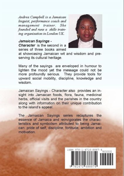 Jamaican Sayings - Character is the second in a series of three books that capture Jamaican adages used to communicate ideas about human nature, behaviour, relationships, aspirations, health hope and survival. Jamaican Sayings - Life and Jamaican Sayings - Success complement the series. The adages represent an archive of the wit and wisdom of many generations and aim to trigger reflection and thought. In their use they are never fully explained but those to whom they are directed usually understand their meaning based on the context in which they are used. They utilise imagery and draw upon a variety of flora and fauna to enrich their content. They hold valuable lessons, inspiration and wisdom that link Jamaican culture to its African past. The sayings are presented in three parts: i) the original saying; ii) the literal English translation and iii) the meaning it aims to convey.