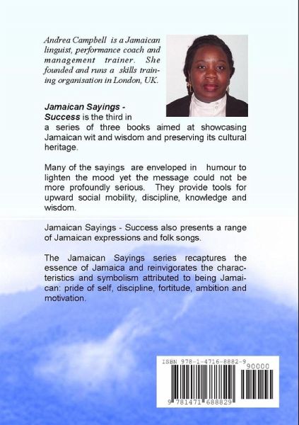 Jamaican Sayings - Success is the third in a series of three books that capture Jamaican adages used to communicate ideas about human nature, behaviour, relationships, aspirations, health hope and survival. Jamaican Sayings - Life and Jamaican Sayings - Character complement the series. The adages represent an archive of the wit and wisdom of many generations and aim to trigger reflection and thought. In their use they are never fully explained but those to whom they are directed usually understand their meaning based on the context in which they are used. They utilise imagery and draw upon a variety of flora and fauna to enrich their content. They hold valuable lessons, inspiration and wisdom that link Jamaican culture to its African past. The sayings are presented in three parts: i) the original saying; ii) the literal English translation and iii) the meaning it aims to convey.