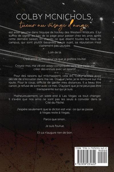 Colby McNichols, tueur au visage d'ange, est ailier gauche dans l'équipe de hockey des Western Wildcats. Il lui suffira de signer au bas de la page pour passer chez les pros après cette dernière saison. Et d'après ce que disent toutes les filles du campus, qui sont plutôt bavardes sur le sujet, sa réputation n'est clairement pas usurpée. Loin de là. C'est entre autres pour ça que je préfère l'éviter. Croyez-moi, ma vie est assez compliquée sans que j'aille me créer des ennuis avec un sportif. Pour des raisons qui m'échappent, cela dit, Colby semble avoir décidé de s'incruster dans ma vie. Où que j'aille, je le retrouve sur ma route. Pour le coup, difficile de garder mes distances. Il a beau être canon, je refuse de sortir avec ce mec. D'autant que je ne peux pas être transparente sur qui je suis. Malheureusement, un week-end à Las Vegas va tout changer. Il s'avère que nos amis ne sont pas les seuls à convoler dans la Cité du Péché. J'espère seulement que le dicton est vrai : ce qui se passe à Vegas reste à Vegas. Parce que sinon... Je suis foutue. Et ça n'augure rien de bon.
