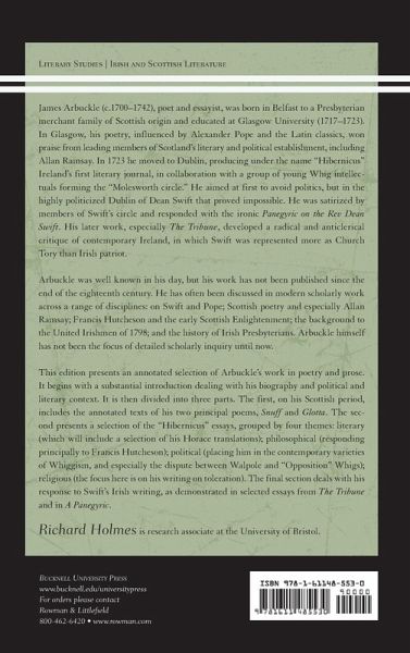 This work contains a selection of James Arbuckle’s poems and essays presented in a first modern scholarly edition with a biographical introduction. The work, which includes original poems, translations of Horace, satires on Swift, essays on politics, politeness and the early Scottish Enlightenment, offers new insights into early eighteenth-century British and Irish culture.