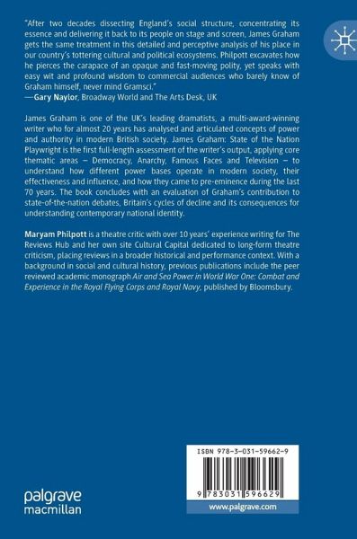 James Graham is one of the UK's leading dramatists, a multi-award-winning writer who for almost 20 years has analysed and articulated concepts of power and authority in modern British society. James Graham: State of the Nation Playwright is the first full-length assessment of the writer's output, applying core thematic areas - Democracy, Anarchy, Famous Faces and Television - to understand how different power bases operate in modern society, their effectiveness and influence, and how they came to pre-eminence during the last 70 years. The book concludes with an evaluation of Graham's contribution to state-of-the-nation debates, Britain's cycles of decline and its consequences for understanding contemporary national identity.