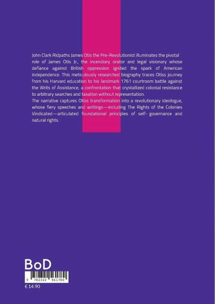 John Clark Ridpaths James Otis the Pre-Revolutionist illuminates the pivotal role of James Otis Jr., the incendiary orator and legal visionary whose defiance against British oppression ignited the spark of American independence. This meticulously researched biography traces Otiss journey from his Harvard education to his landmark 1761 courtroom battle against the Writs of Assistance, a confrontation that crystallized colonial resistance to arbitrary searches and taxation without representation. The narrative captures Otiss transformation into a revolutionary ideologue, whose fiery speeches and…mehr