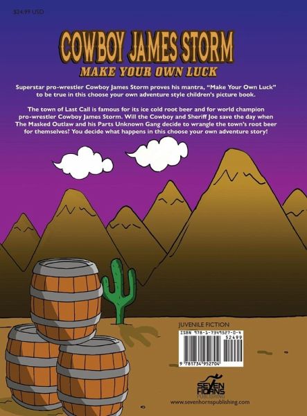 Superstar pro-wrestler Cowboy James Storm proves his mantra, Make Your Own Luck! to be true in this choose your own adventure style children's picture book! The town of Last call is famous for two things. One is its ice cold root beer, and the other is world champion wrestler Cowboy James Storm. Will the Cowboy and Sheriff Brown save the day when The Masked Outlaw and his Parts Unknown Gang decide to wrangle the town's root beer for themselves? You decide in James Storm: Make Your Own Luck! a make your own story book!
