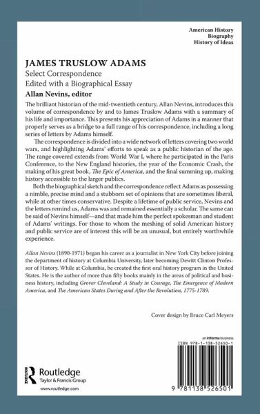 The brilliant historian of the mid-twentieth century, Allan Nevins, introduces this volume of correspondence by and to James Truslow Adams with a summary of his life and importance.