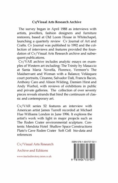 Cv/VAR series 52 features an interview with American artist James Turrell recorded at Michael Hue Williams London in June 1996. It explores the artist's work with light in major projects such as The Roden Crater environmental sculpture. Contents: Mendota Hotel Shallow Space Constructions Plato's Cave Roden Crater Soft Cell bio-data and references