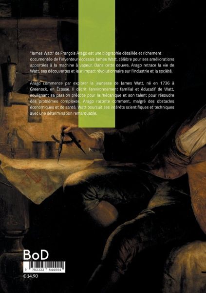 "James Watt" de François Arago est une biographie détaillée et richement documentée de l'inventeur écossais James Watt, célèbre pour ses améliorations apportées à la machine à vapeur. Dans cette oeuvre, Arago retrace la vie de Watt, ses découvertes et leur impact révolutionnaire sur l'industrie et la société. Arago commence par explorer la jeunesse de James Watt, né en 1736 à Greenock, en Écosse. Il décrit l'environnement familial et éducatif de Watt, soulignant sa passion précoce pour la mécanique et son talent pour résoudre des problèmes complexes. Arago raconte comment, malgré des obstacles économiques et de santé, Watt poursuit ses intérêts scientifiques et techniques avec une détermination remarquable. Le livre s'attarde sur la période durant laquelle Watt, en tant que fabricant d'instruments scientifiques à l'Université de Glasgow, conçoit ses premières idées pour améliorer la machine à vapeur. Arago explique en détail les innovations de Watt, telles que le condensateur séparé, qui augmente considérablement l'efficacité de la machine à vapeur, transformant ainsi les secteurs industriel et économique. Arago ne se contente pas de présenter Watt comme un inventeur génial ; il explore également ses collaborations importantes, notamment avec Matthew Boulton, un entrepreneur qui joue un rôle crucial dans la commercialisation et la diffusion des machines à vapeur de Watt. Cette alliance entre génie technique et sens des affaires est illustrée par des anecdotes et des exemples concrets, montrant comment leurs efforts conjoints ont conduit à la révolution industrielle. L'auteur examine aussi les aspects personnels de la vie de Watt, incluant ses luttes contre la dépression et ses préoccupations familiales. Arago humanise son sujet en présentant un portrait équilibré de Watt, à la fois comme un pionnier scientifique et un homme aux prises avec les défis de son époque. Arago conclut par une réflexion sur l'héritage de James Watt, soulignant l'impact durable de ses innovations sur le monde moderne. Grâce à ses contributions, Watt a non seulement transformé l'industrie mais a également inspiré d'innombrables inventeurs et ingénieurs. "James Watt" de François Arago est une biographie captivante et instructive, offrant un éclairage approfondi sur l'homme dont les inventions ont changé le cours de l'histoire.