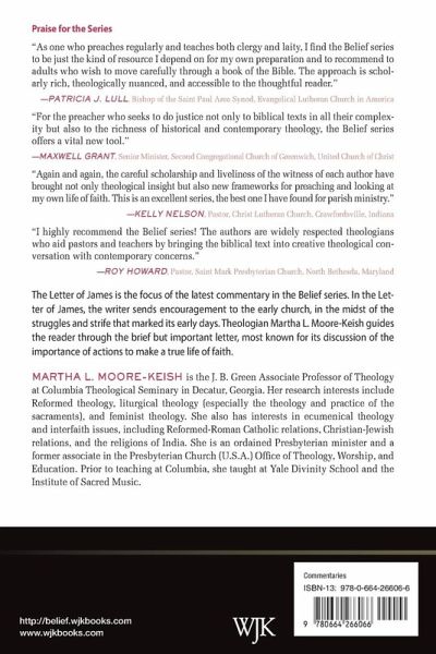 The Letter of James is the focus of the latest commentary in the Belief series. In the Letter of James, the writer sends encouragement to the early church, in the midst of the struggles and strife that marked its early days. Theologian Martha L. Moore-Keish guides the reader through the brief but important letter.