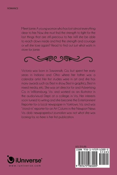 Meet Jamie. A young woman who has lost almost everything dear to her. Now she must find the strength to fight for the last things that are still precious to her. Will she be able to reach down inside and find the strength and courage or will she lose again? Read to find out just what waits in store for Jamie.