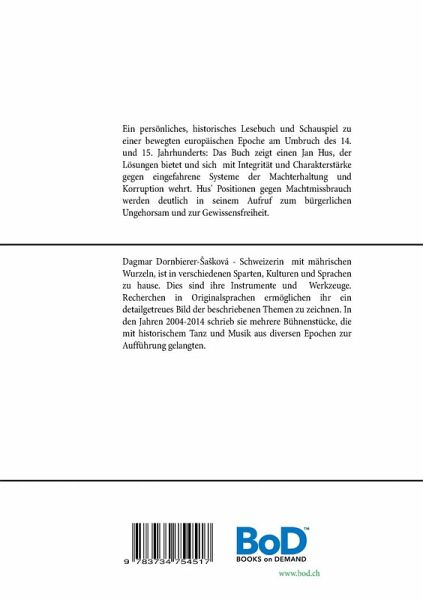 Ein persönliches, historisches Lesebuch und Schauspiel zu einer bewegten europäischen Epoche am Umbruch des 14. und 15. Jahrhunderts:"Jan Hus - Der Wahrheit Willen" entstand als Schauspiel, basierend auf einer Erzählung der Autorin über das fiktive Zusammentreffen des Prager Gelehrten mit jenem Menschen, der für manche von Hus' Zeitgenossen den Antichristen verkörperte - Baldassare Cossa, dem "ungezählten" Papst Johannes XXIII. Die Autorin, Dagmar Dornbierer-Sasková, zeigt in ihrem Buch und Bühnenstück einen Jan Hus, der sich lösungsorientiert, praktisch veranlagt und modern, mit Integrität und Charakterstärke, gegen eingefahrene Systeme der Machterhaltung und Korruption wehrt. Hus' Positionen gegen Machtmissbrauch werden deutlich in seinem Aufruf zum bürgerlichen Ungehorsam und zur Gewissensfreiheit.Das Wirken des Prager Universitätsmagisters, Jan Hus steht im Vordergrund der Erzählungen - und er selbst im Mittelpunkt der Ereignisse.