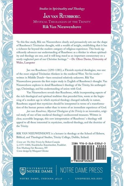 Jan Van Ruusbroec (1293-1381), a Flemish mystical theologian, was one of the most original Trinitarian thinkers in the medieval West. Yet, his works - written in Middle-Dutch - have remained relatively unknown. In this book, Rik Van Nieuwenhove presents the first major study in English of Ruusbroec's thought. Van Nieuwenhove explores in detail Ruusbroec's theology of the Trinity, his anthropology, Christology, and his understanding of union with God. Van Nieuwenhove's study reveals that Ruusbroec, while incorporating aspects of the rich theological and spiritual tradition that preceded him, wrote at the beginning of a modern age in which mystical theology changed radically in nature. Ruusbroec claimed that the divine Persons are subject to an eternal dynamic of procession or out-going from the Father, on the one hand, and returning to the shared divine essence, on the other. The human person is called to participate in this continuous ebbing and flowing by leading a life that combines contemplation and charitable activity. Ruusbroec argued that mysticism should be interpreted in terms of a transformation of the human person rather than in terms of an immediate experience of God.