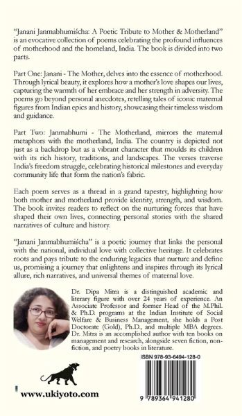 "Janani Janmabhumi¿cha: A Poetic Tribute to Mother & Motherland" is an evocative collection of poems celebrating the profound influences of motherhood and the homeland, India. The book is divided into two parts. Part One: Janani - The Mother, delves into the essence of motherhood. Through lyrical beauty, it explores how a mother's love shapes our lives, capturing the warmth of her embrace and her strength in adversity. The poems go beyond personal anecdotes, retelling tales of iconic maternal figures from Indian epics and history, showcasing their timeless wisdom and guidance. Part Two: Janmabhumi - The Motherland, mirrors the maternal metaphors with the motherland, India. The country is depicted not just as a backdrop but as a vibrant character that moulds its children with its rich history, traditions, and landscapes. The verses traverse India's freedom struggle, celebrating historical milestones and everyday community life that form the nation's fabric. Each poem serves as a thread in a grand tapestry, highlighting how both mother and motherland provide identity, strength, and wisdom. The book invites readers to reflect on the nurturing forces that have shaped their own lives, connecting personal stories with the shared narratives of culture and history. "Janani Janmabhumi¿cha" is a poetic journey that links the personal with the national, individual love with collective heritage. It celebrates roots and pays tribute to the enduring legacies that nurture and define us, promising a journey that enlightens and inspires through its lyrical allure, rich narratives, and universal themes of maternal love.