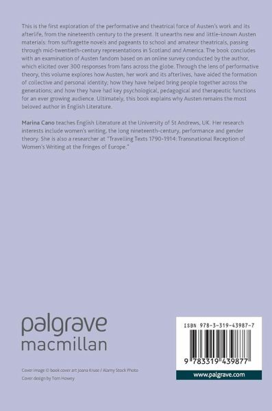 This is the first exploration of the performative and theatrical force of Austen's work and its afterlife, from the nineteenth century to the present. It unearths new and little-known Austen materials: from suffragette novels and pageants to school and amateur theatricals, passing through mid-twentieth-century representations in Scotland and America. The book concludes with an examination of Austen fandom based on an online survey conducted by the author, which elicited over 300 responses from fans across the globe. Through the lens of performative theory, this volume explores how Austen, her work and its afterlives, have aided the formation of collective and personal identity; how they have helped bring people together across the generations; and how they have had key psychological, pedagogical and therapeutic functions for an ever growing audience. Ultimately, this book explains why Austen remains the most beloved author in English Literature.