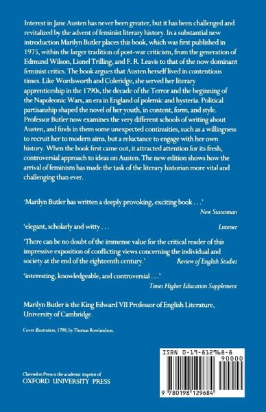 'Marilyn Butler has written a deeply provoking, exciting book.' New Statesman 'There can be no doubt of the immense value for the critical reader of this impressive exposition of conflicting views concerning the individual and society at the end of the eighteenth century.' Review of English Studies 'interesting, knowledgeable, and controversial.' Times Higher Education Supplement.