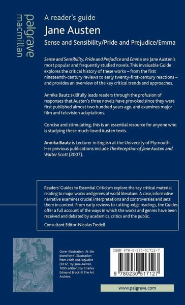 This Guide discusses the range of critical reactions to three of Jane Austen's most widely-studied and popular novels. Annika Bautz takes the reader chronologically through the profusion of criticism by selecting key approaches from the immense variety of responses these three Austen novels have provoked over the last two centuries.