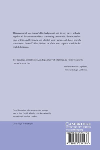 Illustrations Foreword Joan Impey Preface Acknowledgments Notes and Abbreviations Chronology of Jane Austen's life 1. Austens and Leighs, 1600-1764 2. Deane and Steventon, 1764-75 3. India and France, 1752-85 4. Childhood and Steventon, 1775-86 5. Family Life, 1786-92 6. First compositions, 1787-92 7. The young Jane, 1792-6 8. Later years at Steventon, 1796-9 9. The Leigh-Perrots and Bath, 1799-1801 10. Bath and the West Country, 1801-4 11. Bath and Southampton, 1804-8 12. Southampton and Chawton, 1808-9 13. First publication, 1809-12 14. Pride and Prejudice, 1813 15. Mansfield Park and Emma, 1814-15 16. Emma and Persuasion, 1816-17 17. Biography, 1817 and after References Bibliography Family pedigrees Origin and descent of biographical information on Jane Austen.