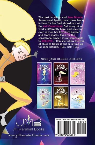 The past is calling, and Jane Blonde, Sensational Spylet, must travel back in time for her final showdown with the evil Copernicus. But everything works differently here, and she can't even rely on her favourite gadgets and team-mates. Even for the sensational spylet, it's all impossible to BELIEV3 ... Can she follow the trail of clues to figure it out or is time up for Jane Blonde? Tick. Tick. Tick. Originally published by Macmillan Children's Books, the Jane Blonde series has sold hundreds of thousands of copies in two dozen countries, featured as a World Book Day title, and has been optioned for film and TV. It is now available for the first time in all sorts of digital versions including e, flip and print books, with fabulous new covers and from its new official home - Jill Marshall Books Ltd. The seven Jane Blonde books are also a SWAGG origin story so you don't have to say bye to Blonde. Meet Janey and the rest of her new team - Jack BC, Matilda Peppercorn, Stein - in the first of the S*W*A*G*G series, Spook.