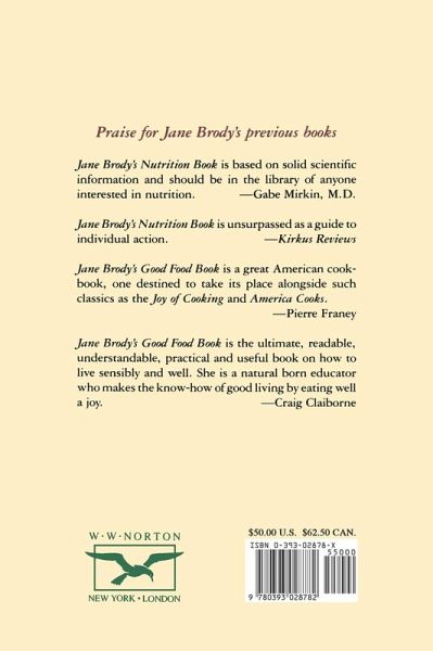 Jane Brody's previous books include the best-selling Jane Brody's Nutrition Book, Jane Brody's Good Food Book, and Jane Brody's Good Food Gourmet