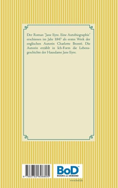 Der Roman "Jane Eyre. Eine Autobiographie" erschienen im Jahr 1847 als erstes Werk der englischen Autorin Charlotte Brontë. Die Autorin erzählt in Ich-Form die Lebensgeschichte der Hausdame Jane Eyre.