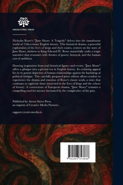 Nicholas Rowe's "Jane Shore: A Tragedy" delves into the tumultuous world of 15th-century English history. This historical drama, a powerful exploration of the lives of kings and their courts, centers on the story of Jane Shore, mistress to King Edward IV. Rowe masterfully crafts a tragic narrative that resonates with themes of power, betrayal, and the human cost of ambition. Drawing inspiration from real historical figures and events, "Jane Shore" offers a glimpse into a pivotal era in English history. Its enduring appeal lies in its potent depiction of human relationships against the backdrop…mehr