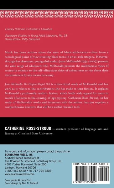 Janet McDonald: The Original Project Girl is a bio-critical study of McDonald and her work as it relates to the contributions she has made to the genre of teen fiction. It explains McDonald's profoundly realistic fiction, which holds wide appeal for teens in search of answers to the coming of age mystery. Catherine Ross-Stroud, in her study of McDonald's works and interviews with the author, has put together a comprehensive resource that will be a useful research tool.