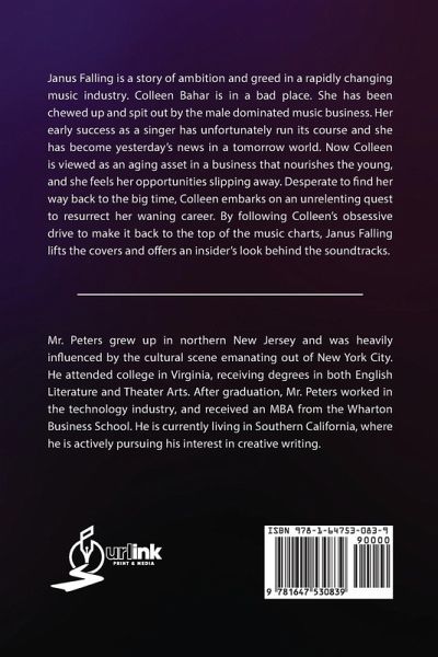 Janus Falling is a story of ambition and greed in a rapidly changing music industry. Colleen Bahar is in a bad place. She has been chewed up and spit out by the male dominated music business. Her early success as a singer has unfortunately run its course and she has become yesterday's news in a tomorrow world. Now Colleen is viewed as an aging asset in a business that nourishes the young, and she feels her opportunities slipping away. Desperate to find her way back to the big time, Colleen embarks on an unrelenting quest to resurrect her waning career. By following Colleen's obsessive drive to…mehr