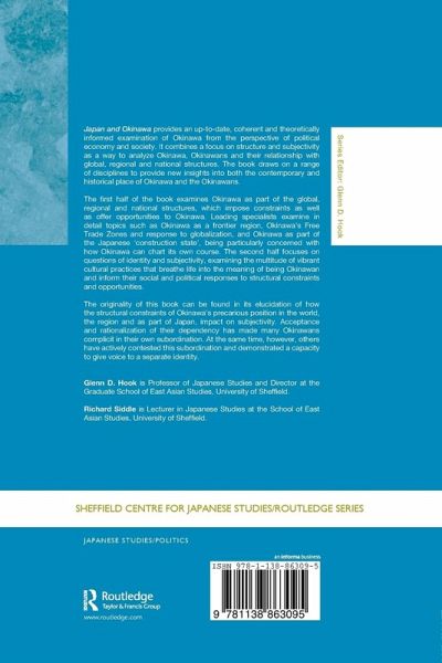 Japan and Okinawa provides an up-to-date, coherent and theoretically informed examination of Okinawa from the perspective of political economy and society. It combines a focus on structure and subjectivity as a way to analyze Okinawa, Okinawans and their relationship with global, regional and national structures. The book draws on a range of disciplines to provide new insights into both the contemporary and historical place of Okinawa and the Okinawans. The first half of the book examines Okinawa as part of the global, regional and national structures which impose constraints as well as offer opportunities to Okinawa. Leading specialists examine in detail topics such as Okinawa as a frontier region, Okinawa's Free Trade Zones and response to globalization, and Okinawa as part of the Japanese 'construction state', being particularly concerned with how Okinawa can chart its own course. The second half focuses on questions of identity and subjectivity, examining the multitude of vibrant cultural practices that breathe life into the meaning of being Okinawan and inform their social and political responses to structural constraints. The originality of this book can be found in its elucidation of how the structural constraints of Okinawa's precarious position in the world, the region and as part of Japan impact on subjectivity. For many Okinawans, in the past as now, acceptance and rationalization of their dependency has made them collaborators in their own subordination. At the same time, however, they have demonstrated a capacity to give voice to a separate identity, inscribing cultural practices marking them as different from mainland Japanese.